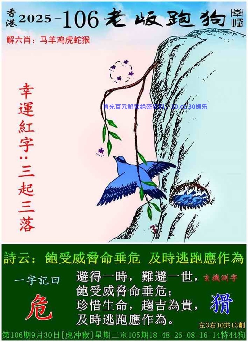 106期:七肖【兔鸡蛇羊虎猴】开:猪43准